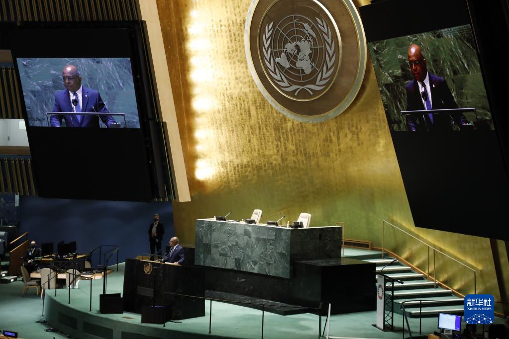 9月20日,在位于紐約的聯合國總部,第76屆聯合國大會主席阿卜杜拉·沙希德在“可持續發展目標時刻”高級別活動上講話。 聯合國20日舉辦旨在推動實現2030年議程的“可持續發展目標時刻”高級別活動。聯合國秘書長古特雷斯在致辭中敦促各國共同努力,重回實現可持續發展目標軌道。 新華社記者 謝鍔 攝