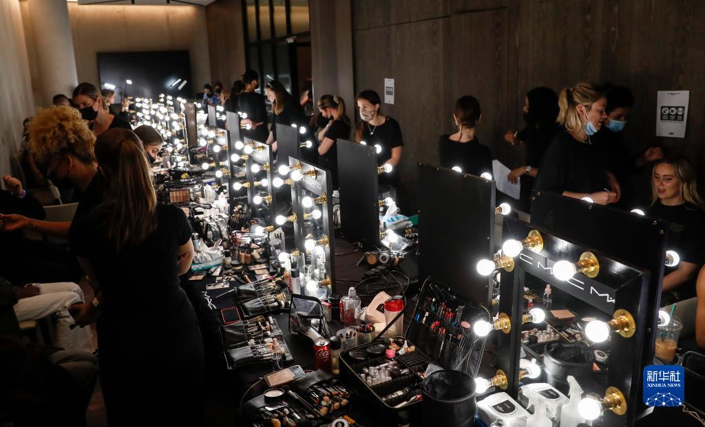 9月21日,模特、造型師等在英國倫敦時裝周后臺為理查德·奎因品牌走秀做準備。