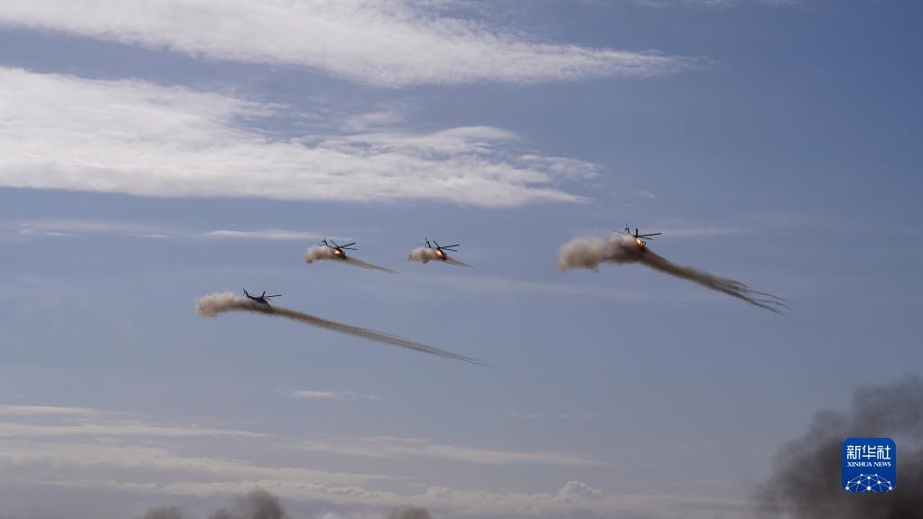 9月23日,在俄羅斯奧倫堡州東古茲靶場(chǎng)舉行的“和平使命-2021”上海合作組織聯(lián)合反恐軍事演習(xí)實(shí)兵實(shí)彈演習(xí)中,多國(guó)聯(lián)合部隊(duì)陸航作戰(zhàn)力量發(fā)射火箭彈。新華社記者 梅世雄 攝 就在多國(guó)聯(lián)合部隊(duì)剛剛完成防御部署時(shí),“恐怖武裝”再次集中兵力、火力,對(duì)多國(guó)聯(lián)合部隊(duì)防御正面展開強(qiáng)攻。 聯(lián)合反恐集群指揮部立即調(diào)整部署。多國(guó)聯(lián)合部隊(duì)使用空中、炮兵和地面火力,對(duì)“恐怖武裝”實(shí)施多波次密集火力打擊,地面裝甲集群堅(jiān)守防御陣地,堅(jiān)決抗擊進(jìn)攻之“恐怖武裝”…… |