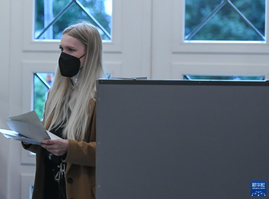 9月26日,在德國柏林一處投票站,一名選民參加聯邦議院選舉投票。