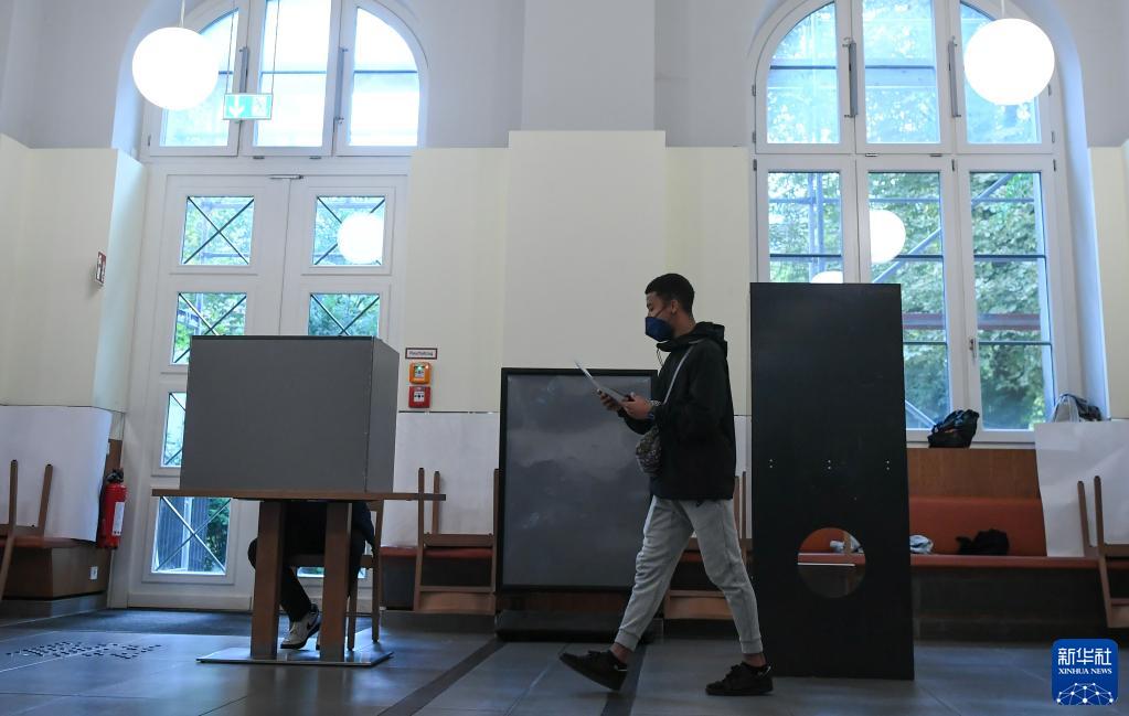 9月26日,在德國柏林一處投票站,一名選民參加聯(lián)邦議院選舉投票。