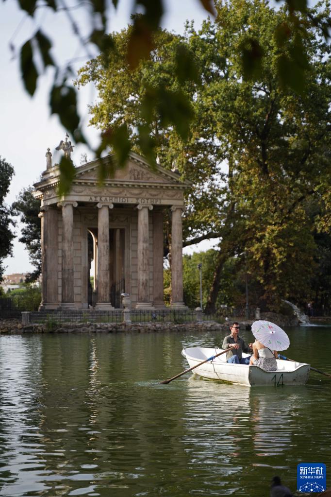 9月25日,人們在意大利羅馬的博爾蓋塞公園劃船。