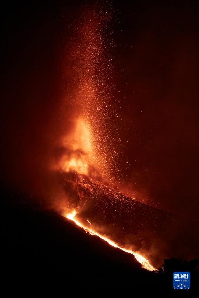 這是9月24日在西班牙拉帕爾馬島拍攝的老昆布雷火山噴發的景象。