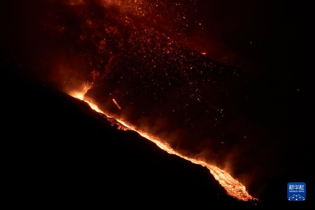 這是9月24日在西班牙拉帕爾馬島拍攝的老昆布雷火山噴發的景象。