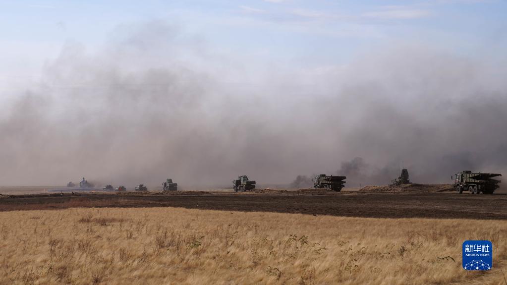 9月23日,在俄羅斯奧倫堡州東古茲靶場舉行的“和平使命-2021”上海合作組織聯合反恐軍事演習實兵實彈演習中,多國聯合部隊工程保障隊、通信保障隊等支援保障力量投入戰斗。新華社記者 梅世雄 攝