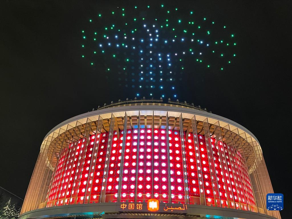 這是10月4日在阿拉伯聯(lián)合酋長(zhǎng)國(guó)迪拜拍攝的迪拜世博會(huì)中國(guó)館大型主題燈光秀。 迪拜世博會(huì)中國(guó)館自10月1日開館以來(lái),每晚上演的大型主題燈光秀受到游客的歡迎。燈光秀以“華夏之光”為主題,通過(guò)中國(guó)館外墻上1312塊LED發(fā)光體與150架無(wú)人機(jī)的矩陣表演相配合,實(shí)現(xiàn)大范圍的動(dòng)態(tài)視覺(jué)效果,為游客獻(xiàn)上一場(chǎng)震撼的視聽(tīng)盛宴。 新華社記者 蘇小坡 攝 |