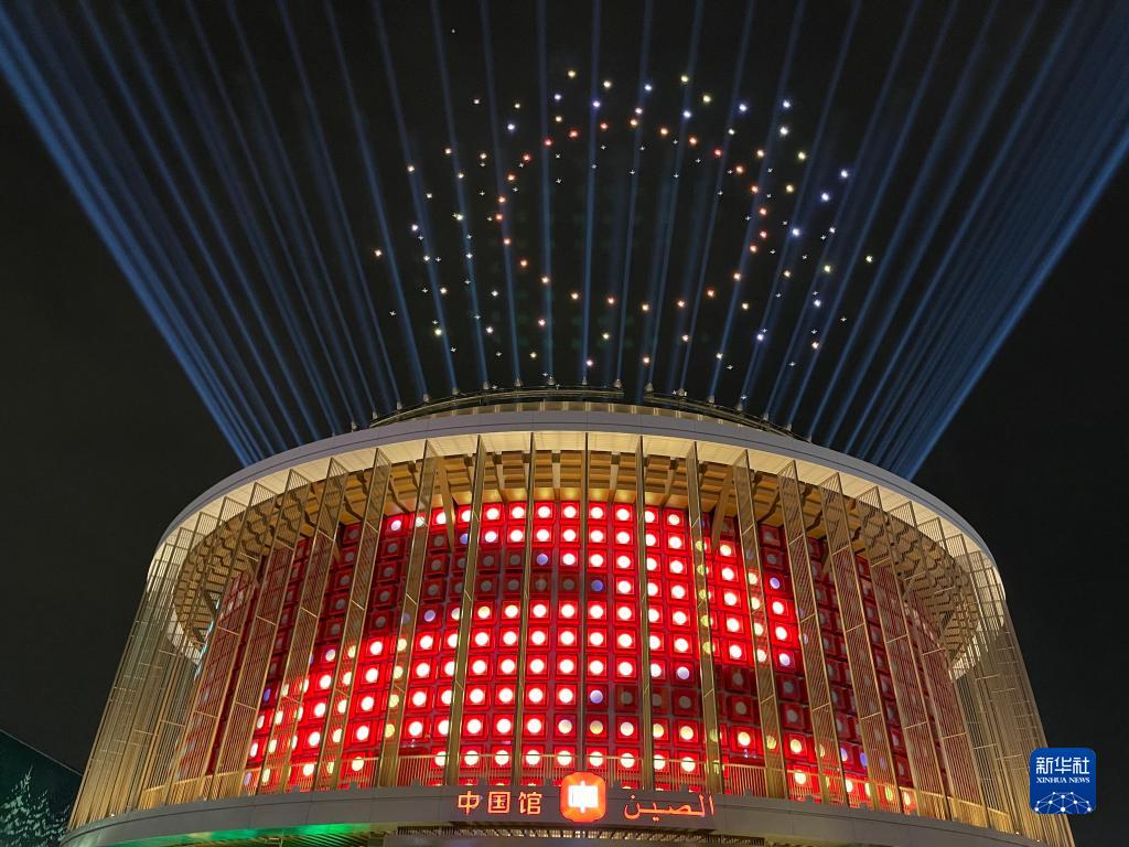這是10月4日在阿拉伯聯合酋長國迪拜拍攝的迪拜世博會中國館大型主題燈光秀。