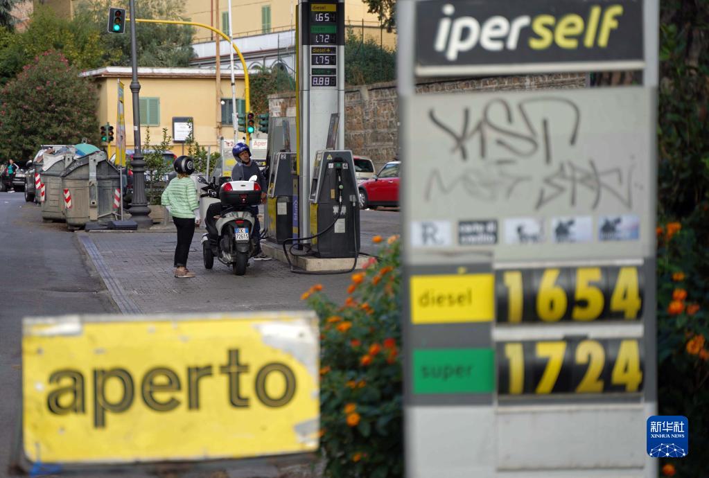 10月9日,人們?cè)谝獯罄_馬的一家加油站內(nèi)為摩托車加油。