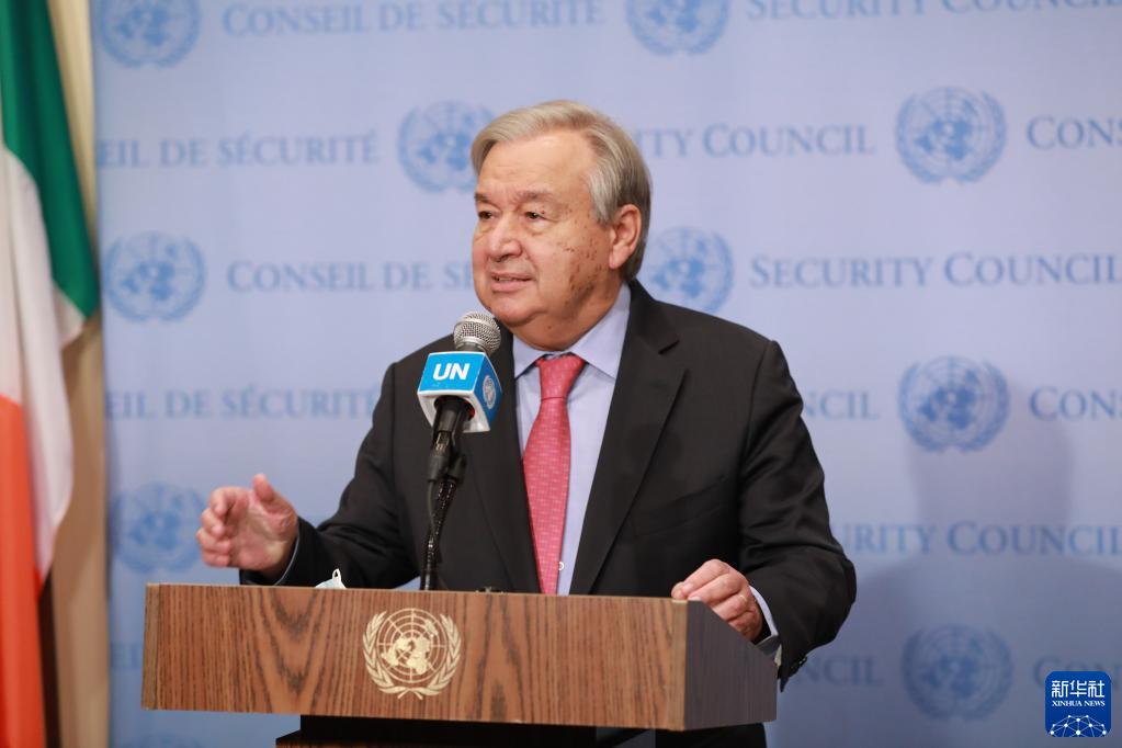10月11日,在位于紐約的聯合國總部,聯合國秘書長古特雷斯在記者會上講話。 古特雷斯11日呼吁國際社會立即采取行動,以避免阿富汗經濟崩潰。 新華社記者 謝鍔 攝