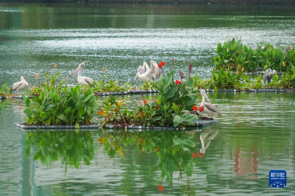以前到科倫坡的貝拉湖看成群的斑嘴鵜鶘要憑運氣,自從湖面上出現綠色的生態浮島,在這里安家的斑嘴鵜鶘越來越多,貝拉湖的景色越來越美,這是記者與經常來貝拉湖散步的當地市民共同觀察到的變化。
