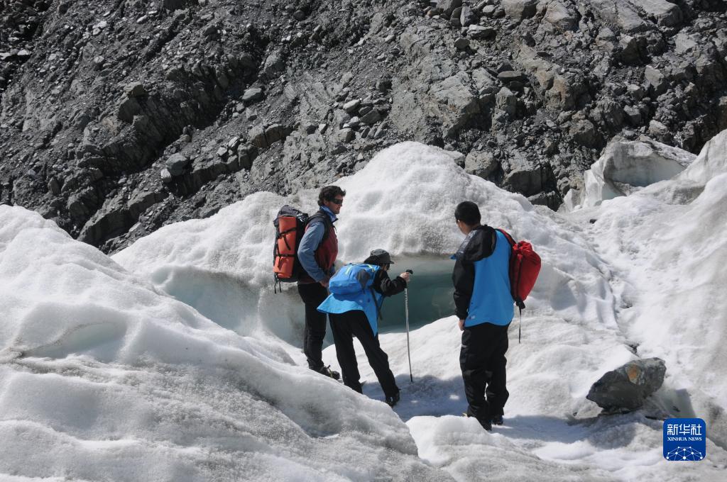 10月13日,人們在新西蘭南島西海岸福克斯冰川上徒步。