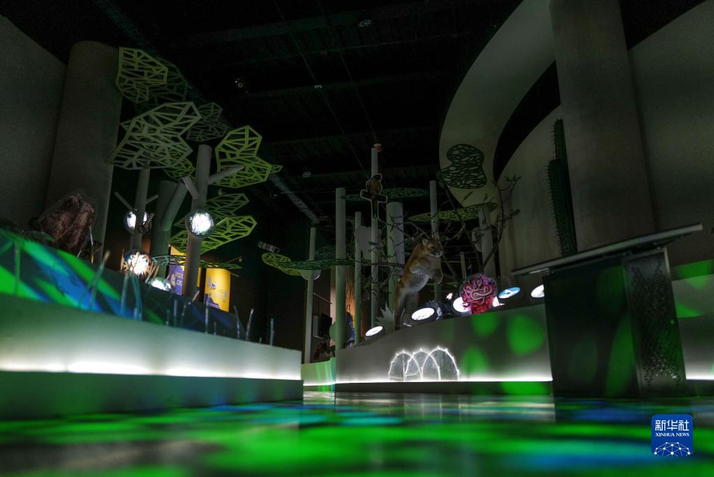10月15日,在位于墨西哥首都墨西哥城的墨西哥國家生物多樣性館,一處展廳正在進(jìn)行布置工作。