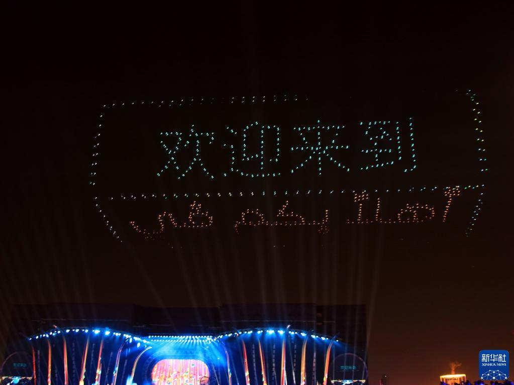 10月20日晚,在沙特阿拉伯首都利雅得舉行的“利雅得狂歡季2021”開幕慶?;顒由?無人機組成多種語言的歡迎字樣。 當晚,沙特阿拉伯首都利雅得舉行活動,以花車游行、無人機表演、煙花秀等形式拉開“利雅得狂歡季2021”的序幕。利雅得狂歡季是沙特促進經濟社會多樣性舉措的一部分,系列活動將持續到2022年3月。 新華社記者 胡冠 攝 |