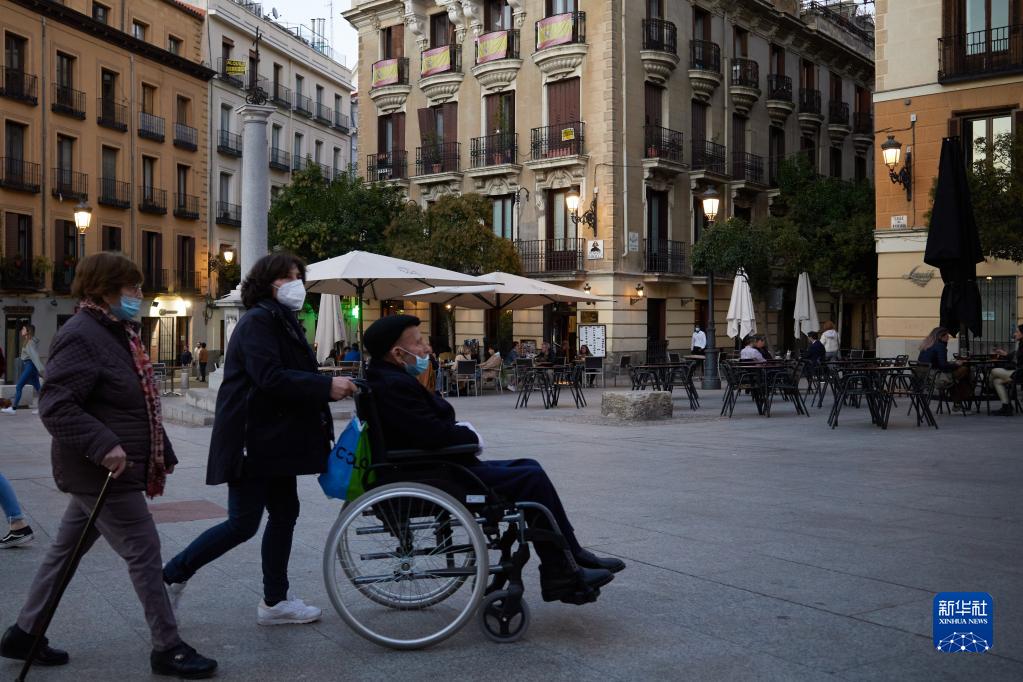 10月25日,戴口罩的行人走過西班牙馬德里市中心。 西班牙衛生部25日發布的統計數據顯示,該國累計新冠確診病例達5002217例。 新華社記者 孟鼎博 攝