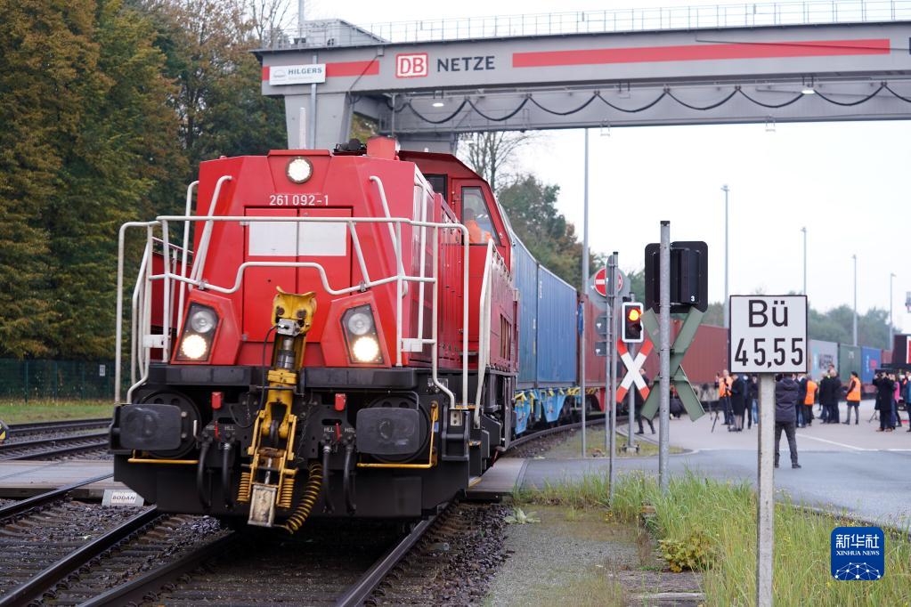 10月26日,首列“上海號(hào)”中歐班列駛?cè)氲聡?guó)漢堡的貨場(chǎng)。