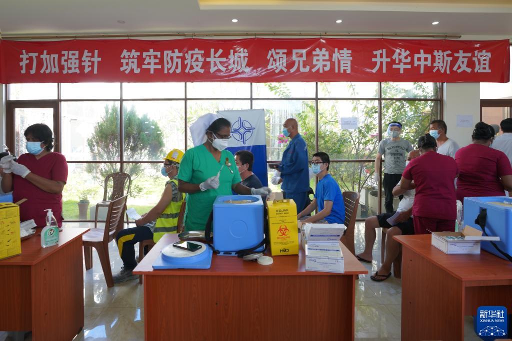 10月23日,在斯里蘭卡科倫坡港口城疫苗接種點,當地醫務人員給在斯中國公民接種疫苗。 “春苗行動”加強針接種近日在斯里蘭卡展開。截至10月25日,3266名在斯中國公民(含港澳臺地區居民)在科倫坡、漢班托塔等5個接種點免費接種了中國產新冠疫苗第三劑加強針。 新華社記者 唐璐 攝 |