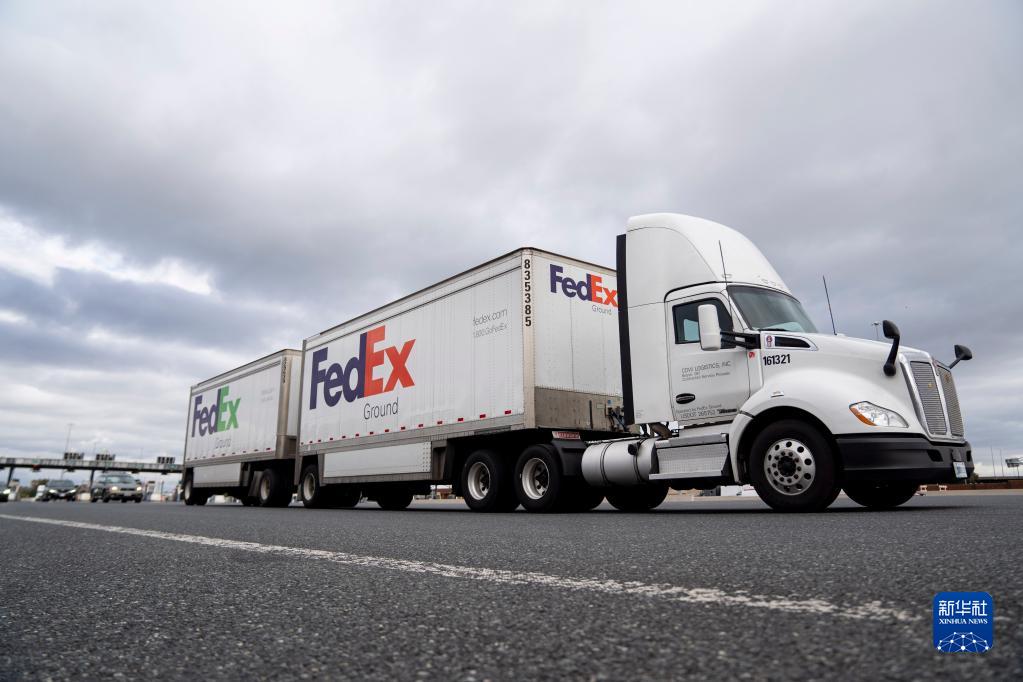 10月26日,集裝箱卡車離開美國(guó)馬里蘭州巴爾的摩市港口。