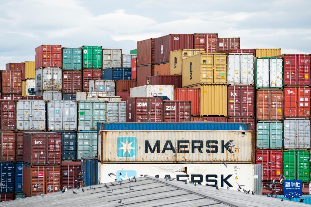 這是10月26日在美國馬里蘭州巴爾的摩市港口拍攝的貨運集裝箱。