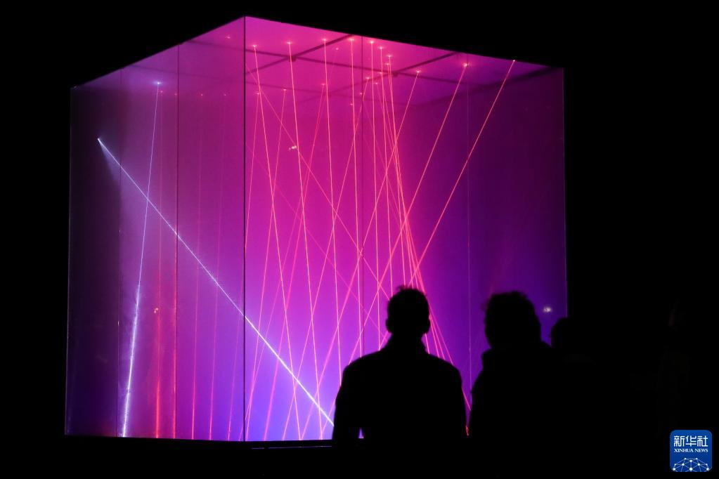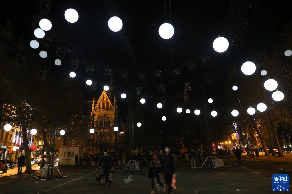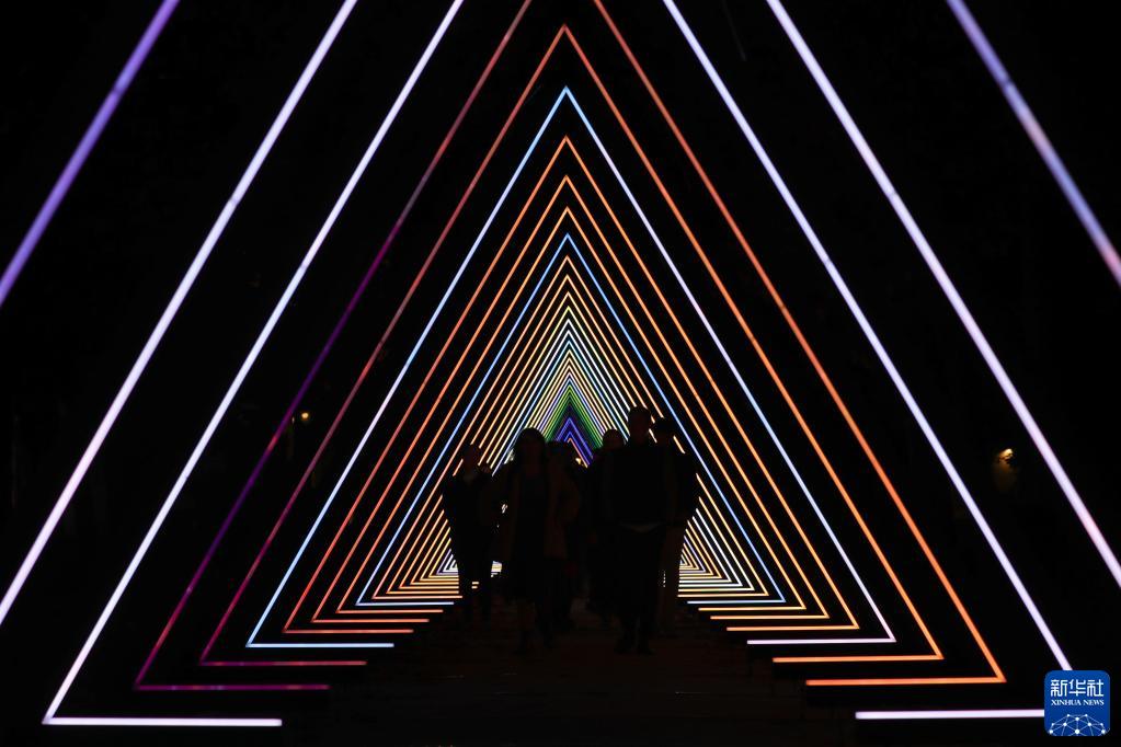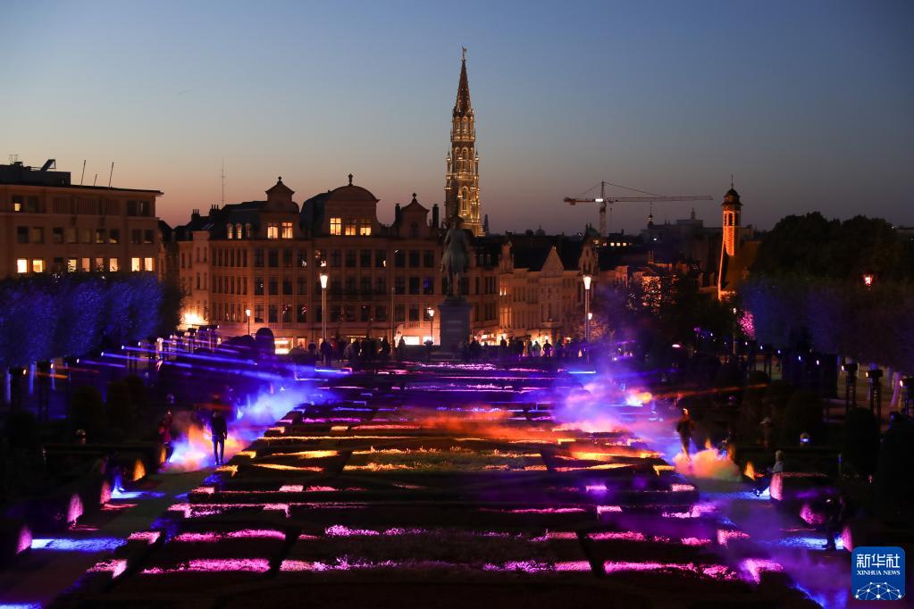 10月28日,人們在比利時布魯塞爾參觀燈光藝術作品。 當日,為期十天的布魯塞爾燈光節開幕,散布城中的十多處大型燈光藝術作品吸引觀眾體驗光影魅力。 新華社記者鄭煥松攝