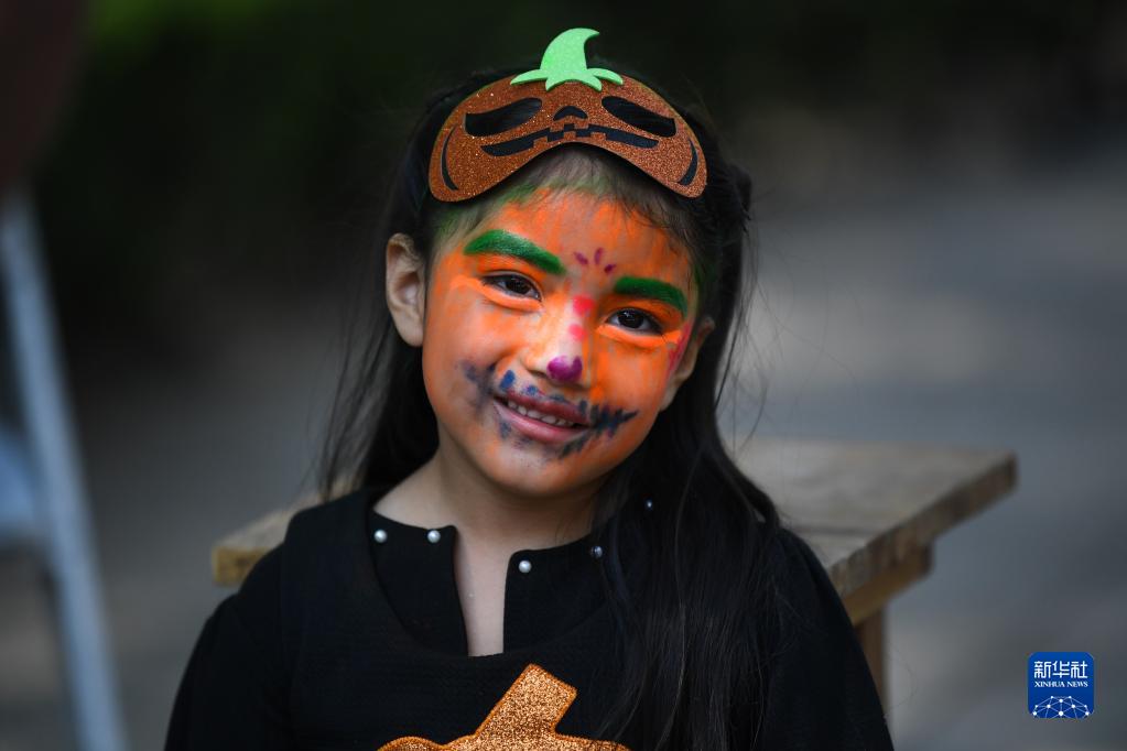 10月31日,在墨西哥首都墨西哥城,一名兒童參加亡靈節游行。 每年的11月1日和2日是墨西哥的傳統節日亡靈節,亡靈節將西方的萬圣節與墨西哥風俗相融合,是墨西哥最隆重、最獨特的節日之一。去年因疫情中斷的墨西哥城亡靈節游行今年恢復舉行,大批民眾走上街頭,慶祝這個崇敬生命的節日。 新華社記者 辛悅衛 攝