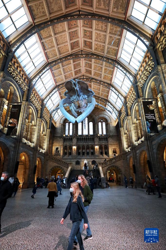 12月18日,在英國倫敦,人們佩戴口罩參觀自然歷史博物館。 英國政府緊急情況科學咨詢小組18日說,英格蘭每天可能新增“數以十萬計”變異新冠病毒奧密克戎毒株感染病例。英國首相約翰遜近日表示,奧密克戎毒株已成為英國“非常嚴重的威脅”。 新華社記者 李穎 攝