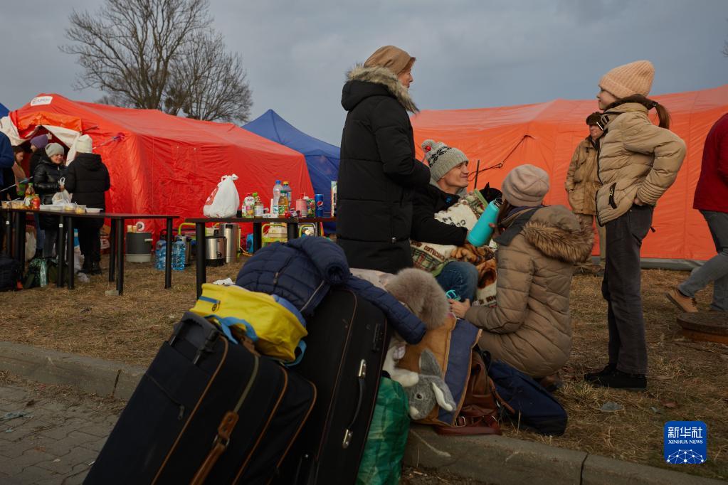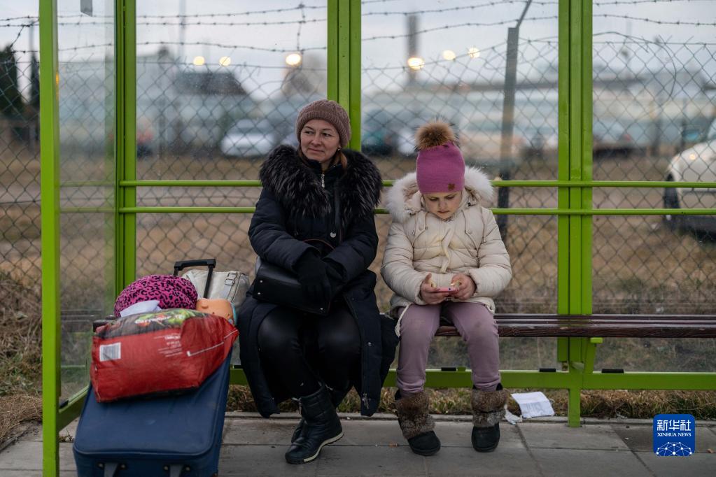 2月26日,烏克蘭人抵達波蘭邊境關口梅迪卡。 聯合國官員26日說,已有超過12萬名烏克蘭人前往鄰國避難。 新華社記者 周楠 攝