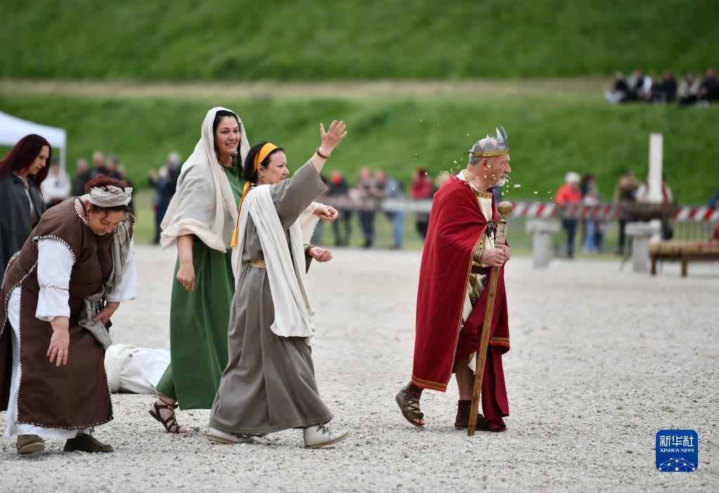 4月21日,人們在意大利羅馬參加“重現(xiàn)”羅馬建城的活動(dòng)。