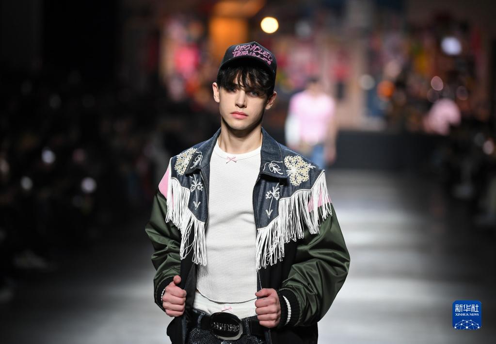 1月13日,模特在意大利米蘭男裝周上展示Dsquared2品牌時裝。