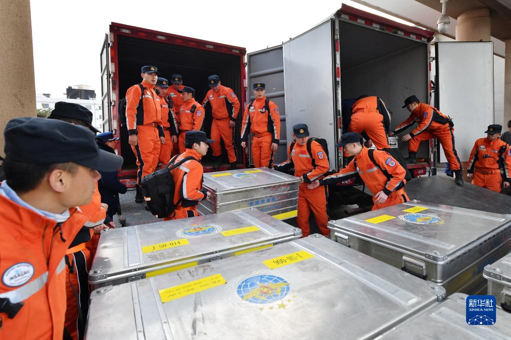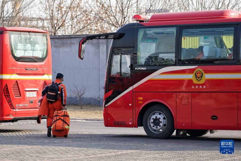 2月7日,中國救援隊隊員在北京大興消防訓練基地準備出發。 應土耳其政府請求,中國政府派遣中國救援隊赴土耳其實施國際救援。 2月6日,土耳其連續發生兩次7.8級地震,造成重大人員傷亡和財產損失。按照統一部署,應急管理部派出中國救援隊82名隊員攜帶救援裝備和物資前往災區,救援隊主要由北京市消防救援總隊、中國地震應急搜救中心、應急總醫院人員組成。 新華社記者 彭子洋 攝