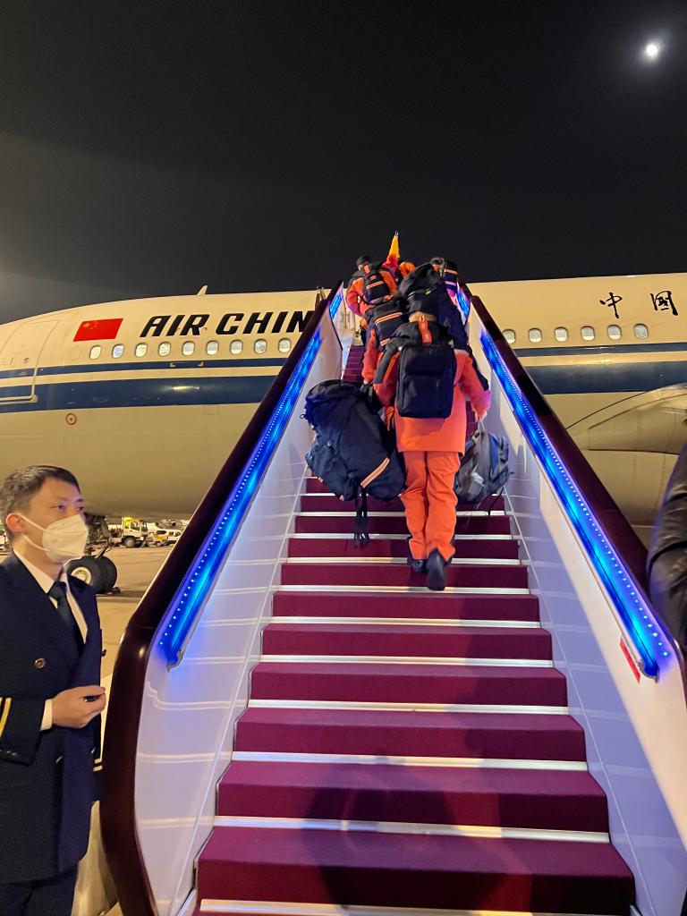 2月7日,中國救援隊隊員登上國航包機,從首都機場出發飛赴災區(手機拍攝)。 應土耳其政府請求,中國政府派遣中國救援隊赴土耳其實施國際救援。 2月6日,土耳其連續發生兩次7.8級地震,造成重大人員傷亡和財產損失。按照統一部署,應急管理部派出中國救援隊82名隊員攜帶救援裝備和物資前往災區,救援隊主要由北京市消防救援總隊、中國地震應急搜救中心、應急總醫院人員組成。 新華社記者 武思宇 攝