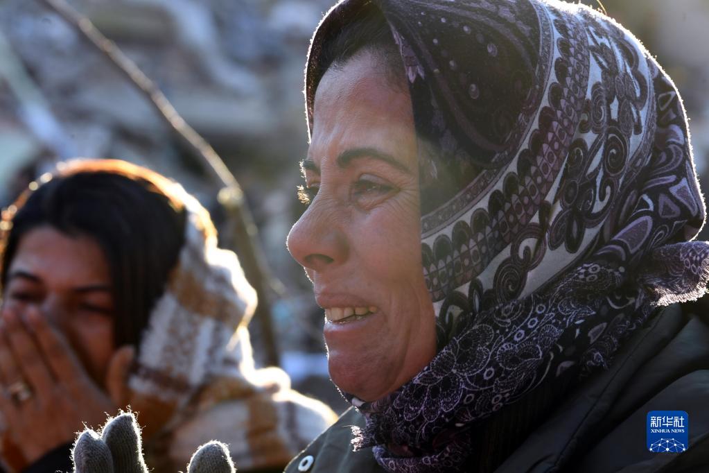 2月8日,在土耳其哈塔伊的一處地震廢墟,當(dāng)?shù)鼐用竦却H人的消息。