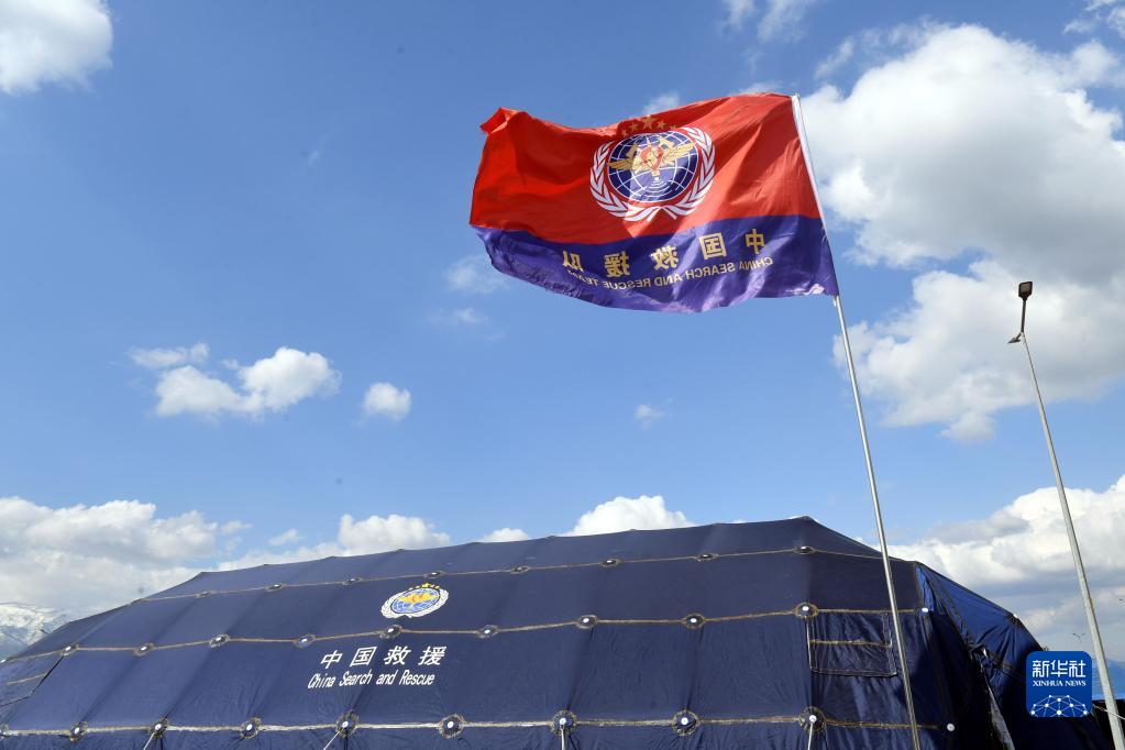 這是2月10日在土耳其哈塔伊省安塔基亞市拍攝的中國救援隊駐扎營區。