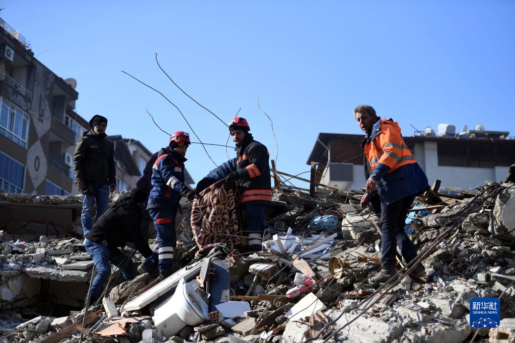 2月11日,包括中國救援隊隊員在內的救援人員在土耳其哈塔伊省安塔基亞市參與搜救。 土耳其衛生部長科賈11日晚說,此次地震在土已造成22327人死亡、80278人受傷。據土媒體報道,死亡人數仍在上升,救援人員當天在廢墟中僅找到少數幸存者,10個受災省份的搜救工作已開始轉向廢墟清理。 新華社記者 沙達提 攝