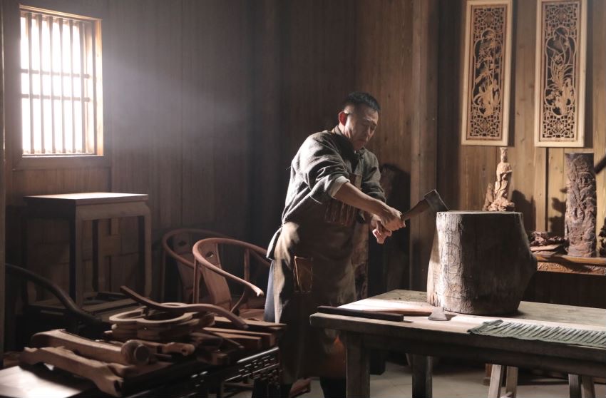 在展現(xiàn)巧奪天工的精湛木雕技法的同時(shí),主人公廖晞身上所代表的精于鉆研、不畏艱險(xiǎn)、勇于開拓的工匠精神更是全劇的靈魂所在。 不管是身處亂世,還是偏安一隅,廖氏家族始終不忘家訓(xùn),秉承良善與赤誠之心做人、做事。 這部劇中各種工具、雕刀之精細(xì)精美,家具產(chǎn)品之大氣,雕件之生動(dòng)無不體現(xiàn)中華木藝文化傳承中的優(yōu)秀,劇中木器陳設(shè)均為紅木實(shí)物,僅從福建莆仙地區(qū)紅木家具廠商、雕刻工廠、展館等調(diào)配征集戲用道具就達(dá)三千多件(套)。