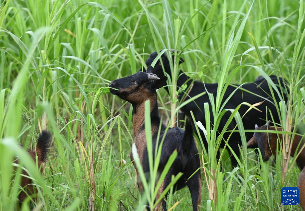 8月21日,在福建省永泰縣清涼鎮北斗村,以菌草為飼料養殖的富泉羊在“珍農菌草富泉羊循環產業示范基地”里吃菌草。
