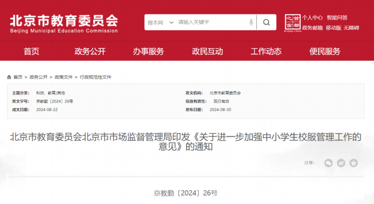 北京:中小學不得強制學生購買校服 可探索校服循環使用