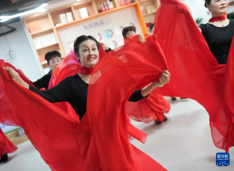 10月10日,老人們在社區鄰里中心排練自編自演的舞蹈節目。