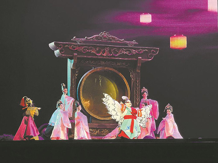 《一鶴“飛”》是晉江市掌中木偶藝術保護傳承中心出品的大型新編傳奇木偶劇。舞臺上,一個個人偶輕盈躍出,騰空旋轉,跳圈吐火……在觀眾的歡呼和掌聲中,一出用喜劇口吻講述的悲劇逐漸展開——