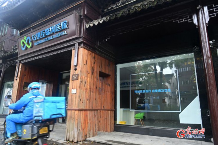 2024年11月17日,浙江烏鎮,外賣騎手從烏鎮互聯網醫院門前經過。(光明網記者 潘迪攝/光明圖片)