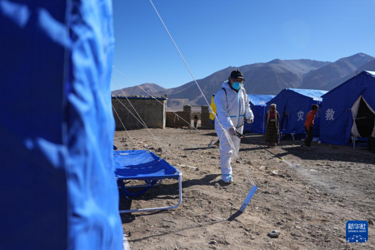1月8日,醫護人員在日喀則市定日縣措果鄉野江村進行消殺。新華社記者 晉美多吉 攝