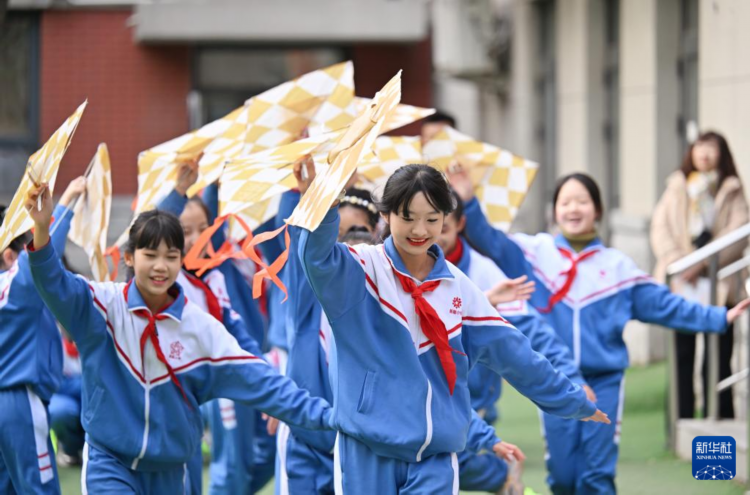 2月17日,在天津市和平區(qū)新星小學(xué),學(xué)生們在開學(xué)典禮上表演節(jié)目。