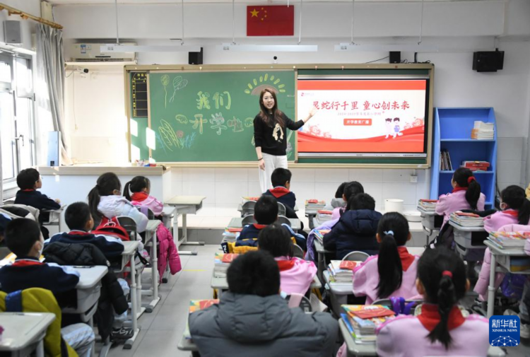 當日,全國多地中小學開學,師生迎接春季新學期。