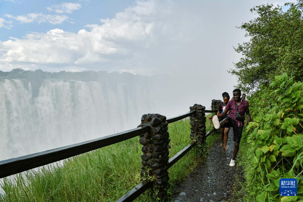 3月29日,游客在贊比亞一側觀賞游覽維多利亞瀑布景色。 維多利亞瀑布位于津巴布韋和贊比亞交界處,1989年被聯合國教科文組織列為世界自然遺產。作為世界上最壯觀的瀑布之一,維多利亞瀑布以其寬度和水量著稱,氣勢磅礴,是非洲著名的旅游景點。 新華社記者 韓旭 攝