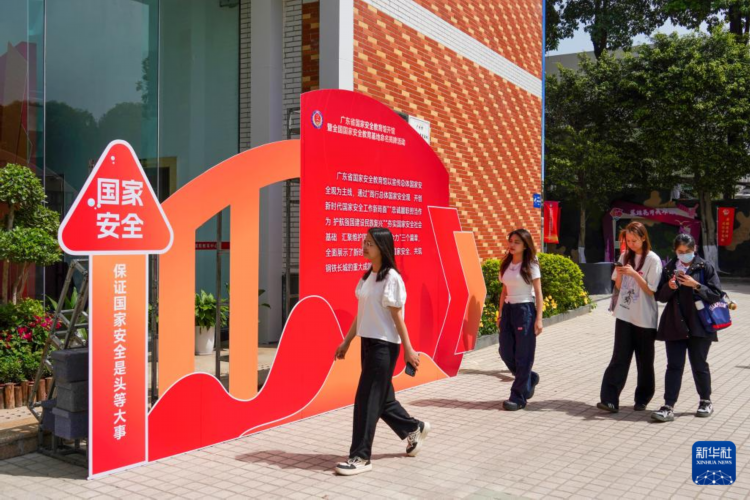 4月14日,參觀者經(jīng)過廣東省國家安全教育館外的宣傳展板。