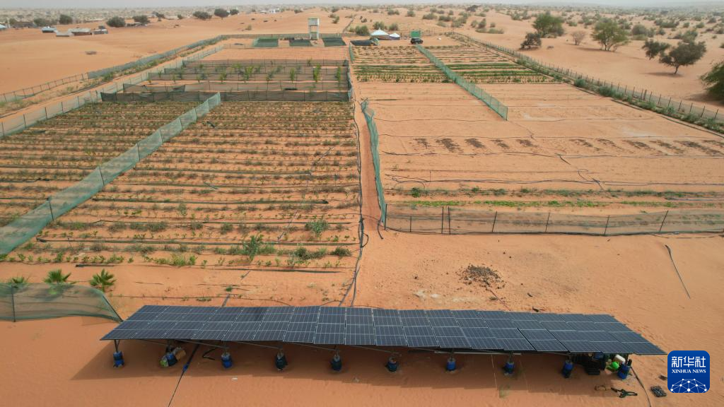 這是5月22日拍攝的位于毛里塔尼亞西部特拉扎區(qū)比爾·巴爾卡村的中非綠色技術(shù)公園(無人機照片)。新華社記者 司源 攝