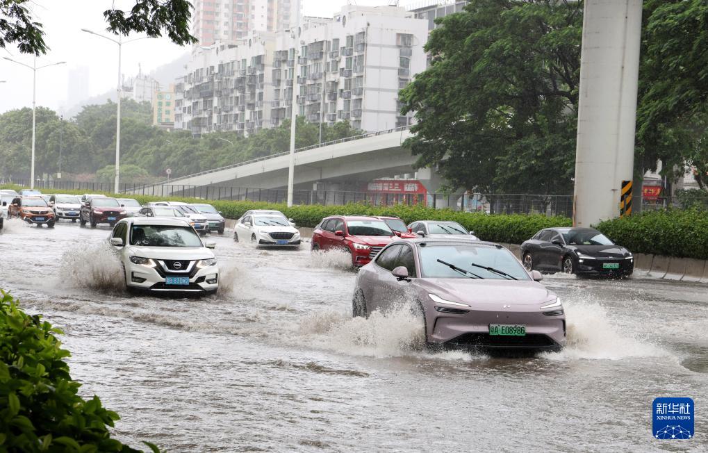 7月20日,車輛在深圳積水路面前行。