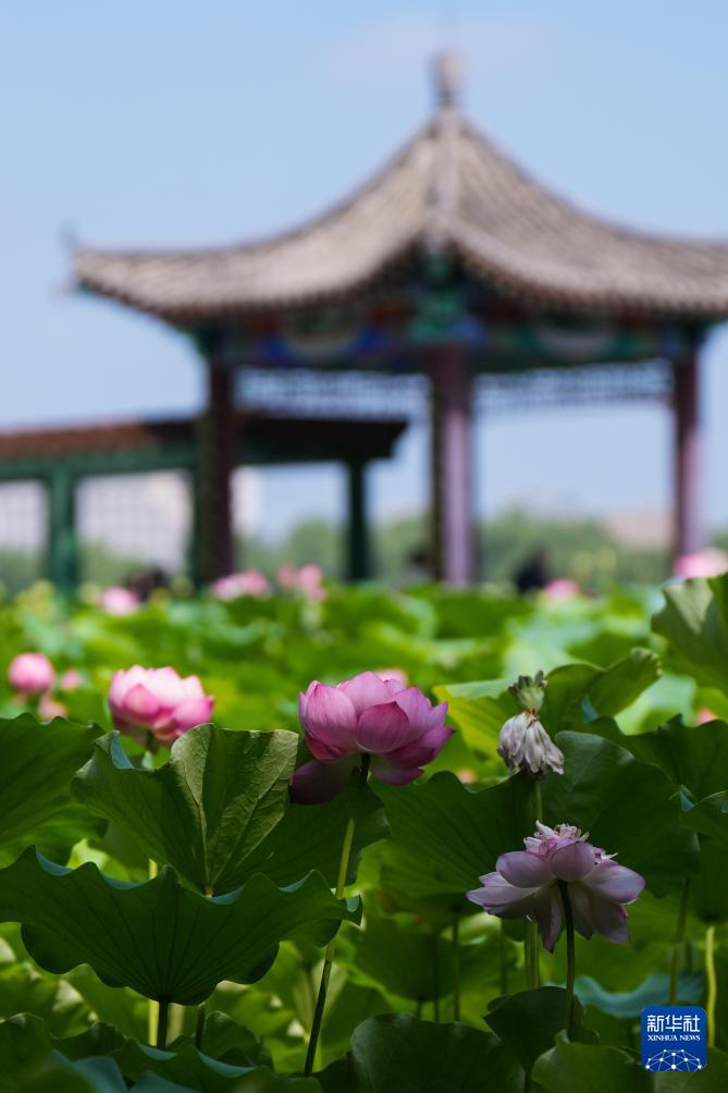 盛夏時節,北京的公園里荷花盛開,美不勝收。