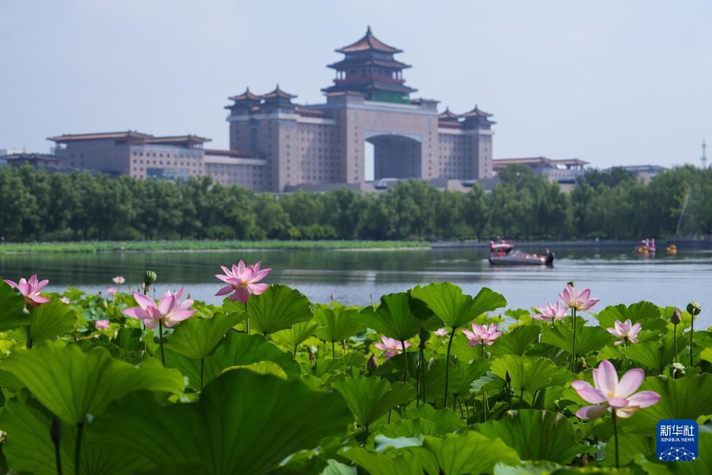 盛夏時節,北京的公園里荷花盛開,美不勝收。