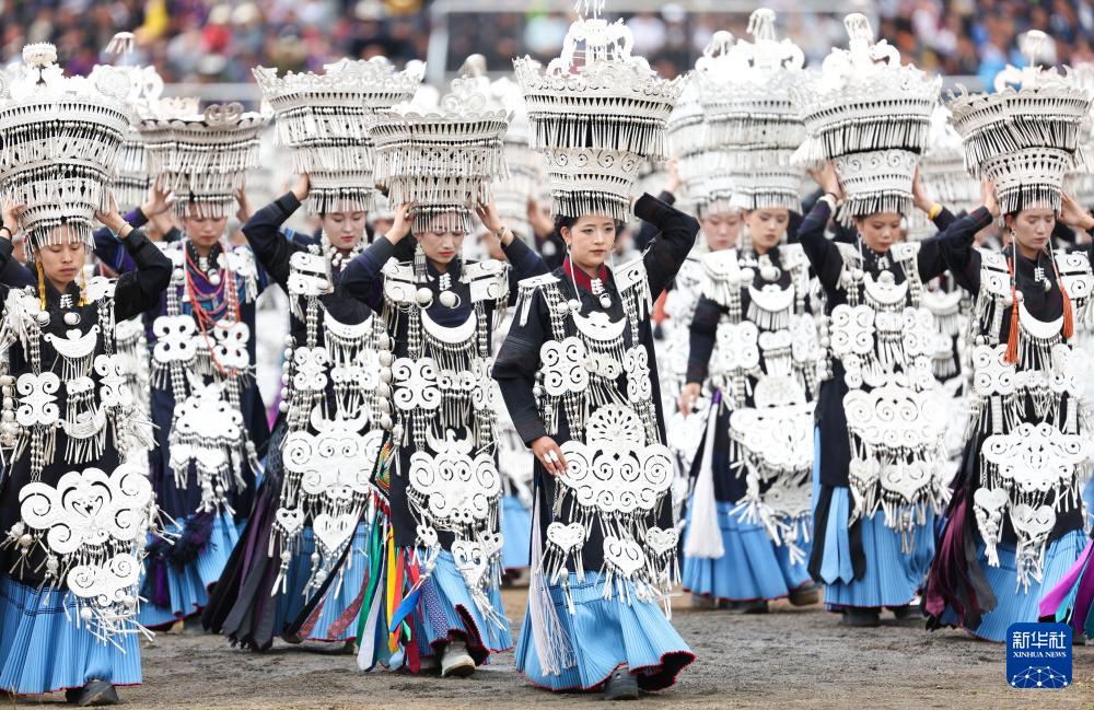 身著彝族傳統銀飾服飾的隊伍在2025年彝族傳統火把節開幕式上巡游(7月22日攝)。