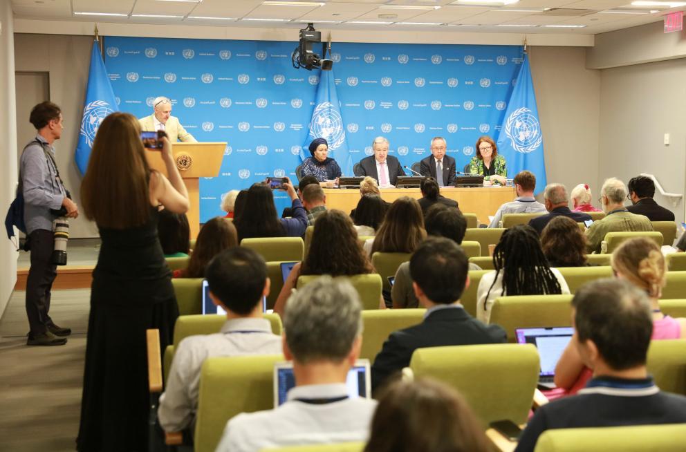 這是7月14日在位于紐約的聯合國總部拍攝的《2025年可持續發展目標報告》發布記者會現場。